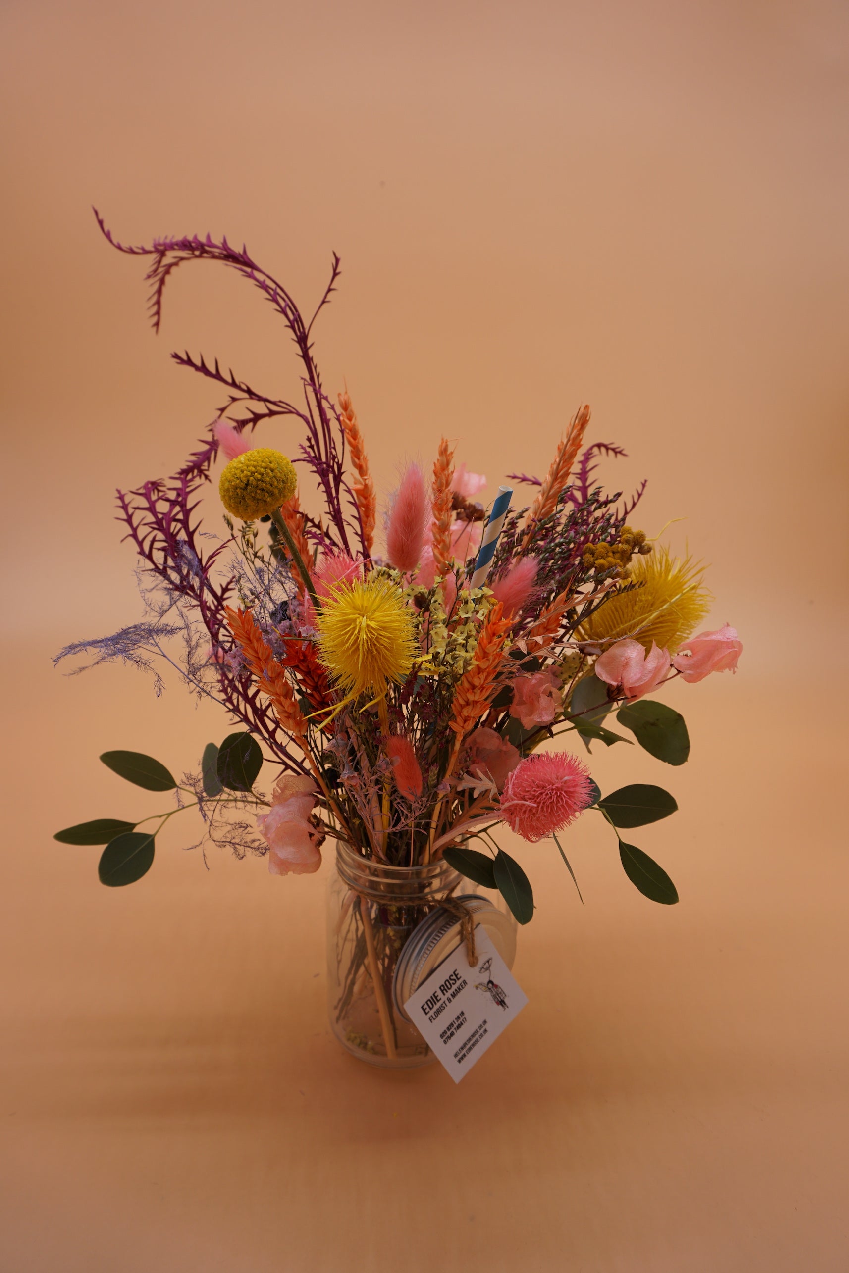 Here at Edie Rose we simply love playing around with dried and preserved flowers/foliage. We mix interesting stems together to create an everlasting bouquet full of unusual textures from cotton wool stems, pampas to dried plant leaves. Each bouquet is bespoke, individual & sustainable.