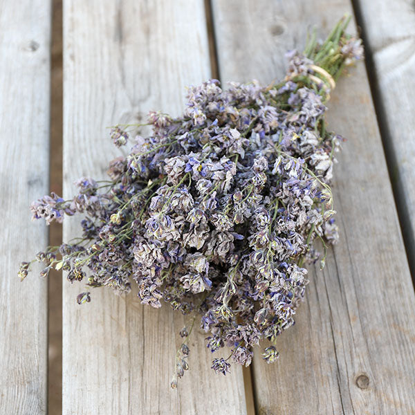 A bunch of our Shropshire grown dried rustic mauve grey Delphiniums, also known as Larkspur.