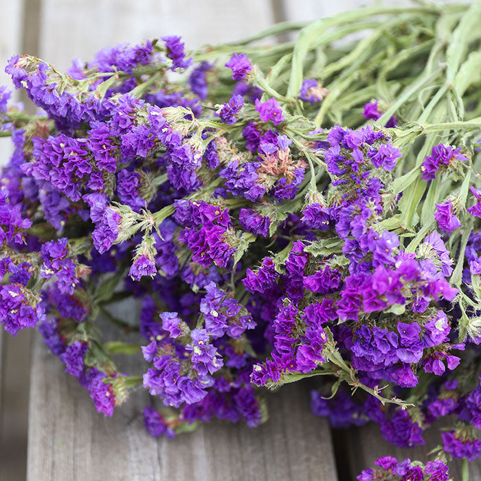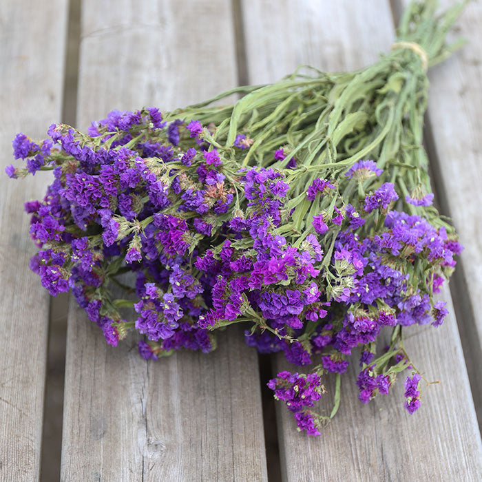A bunch of dried rich dark Purple Statice, naturally grown on our Shropshire farm.