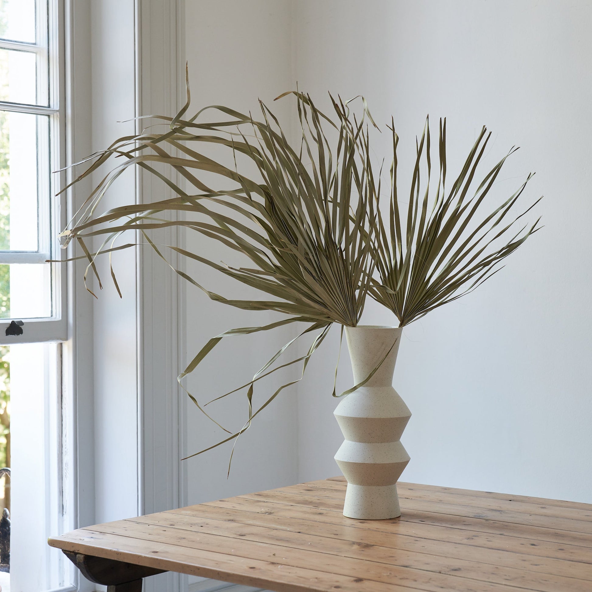 3 huge stems of natural wild palm leaves. Dried palms make an eye catching statement arrangement displayed on their own or as part of a mixed dried flower arrangement