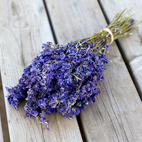 A bunch of our Shropshire grown dried dark blue and purple Delphiniums, also known as Larkspur.