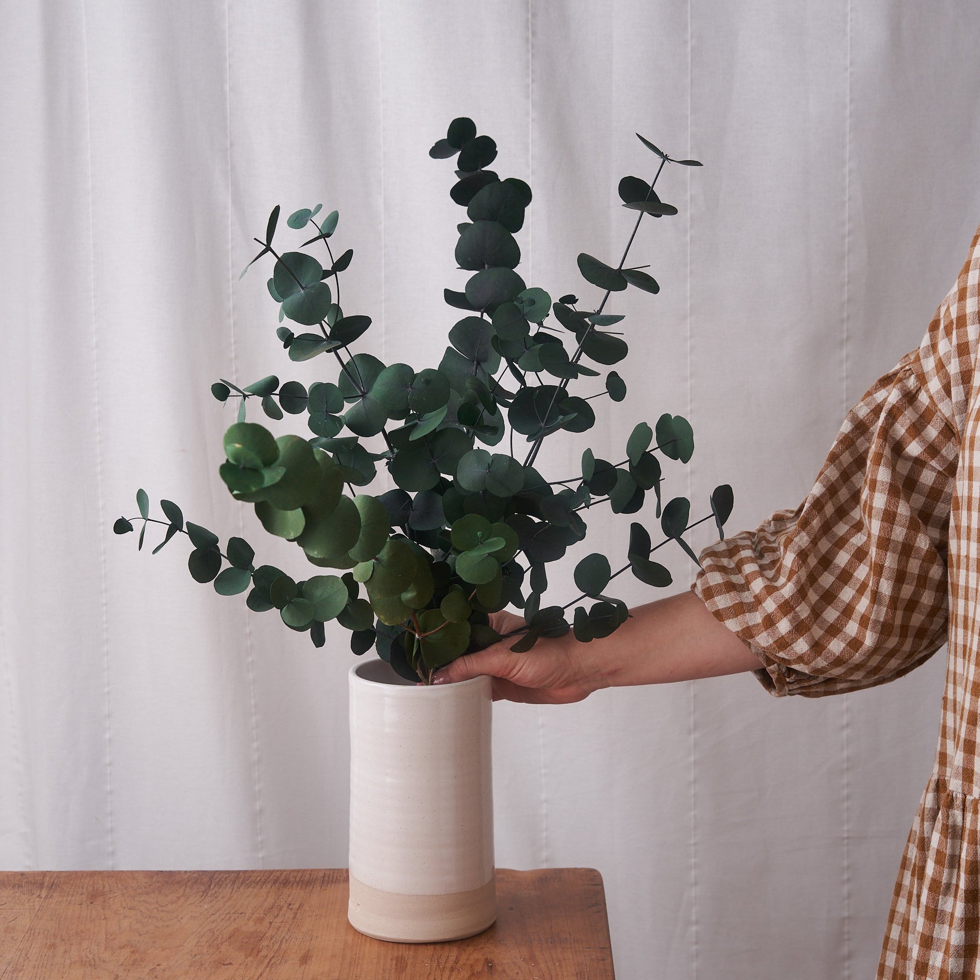 Bunch of preserved Eucalyptus. These Eucalyptus make an eye catching simplistic arrangement displayed on their own or as part of a mixed dried flower arrangement.